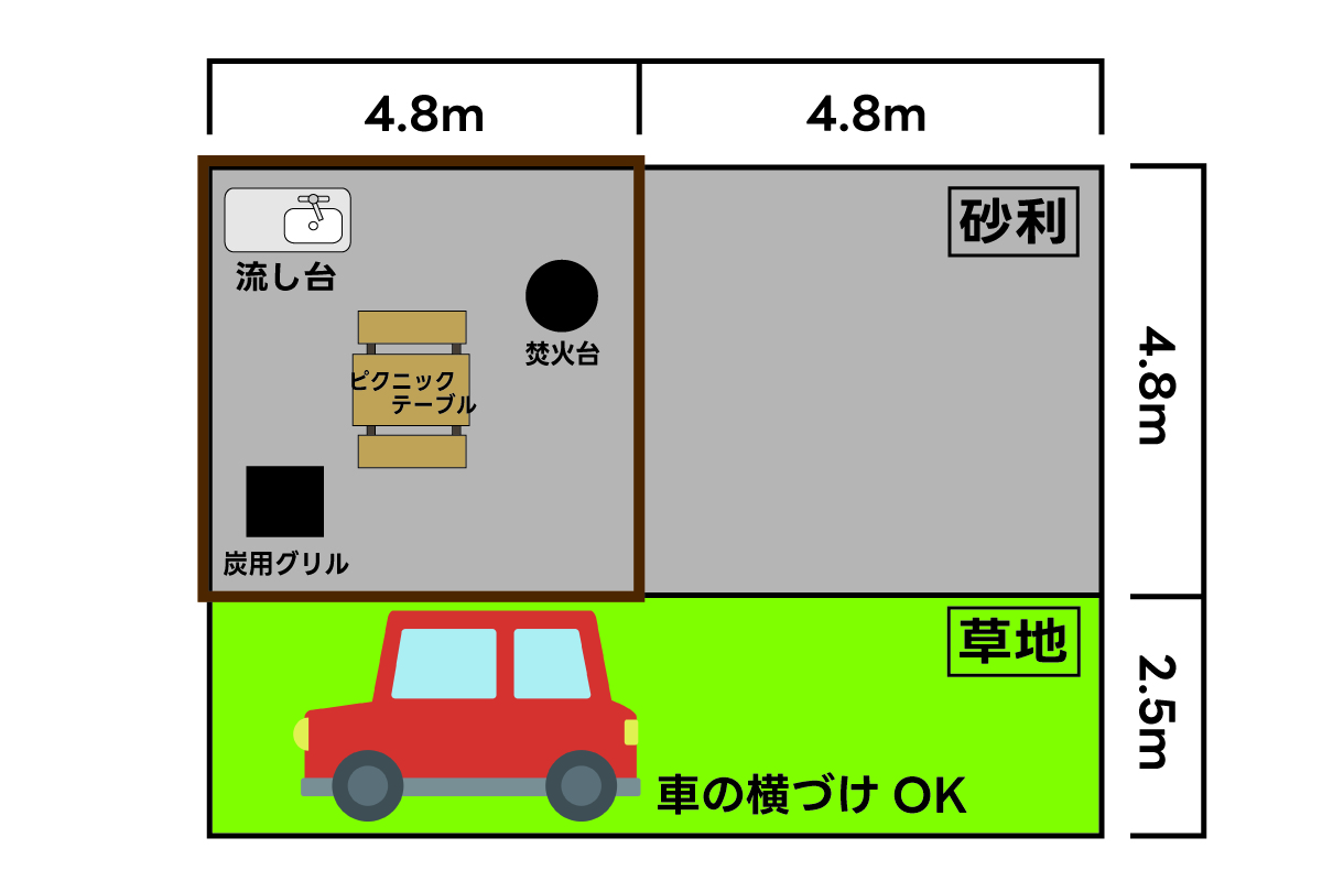 | ピクニックテーブル | BBQグリル(炭用)※網は付属しますが炭は付属しません | AC電源 10A |